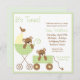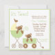 Cet adorable invitation à Baby shower à thème jumeaux est la meilleure façon d'invitation des clients à n'importe quel Baby shower. Doté d'adorables ours dans une poussette verte, customisez avec les détails de votre fête. © Cocoa Studio