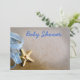 Ajoutez votre propre texte pour plus d'informations sur le baby shower. Ruban bleu et minuscule étoile de mer pour un événement de bébé garçon.