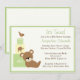 Cette jolie invitation au Baby shower Twins attend d'être customisée avec vos détails. Cette invitation verte présente un adorable ours, des blocs de bébé et les mots "It's Twins!" © Cocoa Studio