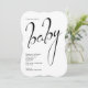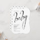 Une invitation baby shower moderne en blanc avec le mot "bébé". L'arrière de l'invitation est à pois polka.<a href="https://www.freepik.com/free-photos-vectors/background">vecteur Arrière - plan créé par rawpixel.com - www.freepik.com</a>). La carte est facile à customiser avec votre libellé, police, couleur de police et choix de six types de papier.<br/>() Pas exactement ce que vous cherchez? Tous nos produits peuvent être conçus sur mesure pour répondre à vos besoins sans frais supplémentaires.<br/>() Contactez-nous simplement à l'adresse askcottonlamb@gmail.com<br/>() Coordonner les produits disponibles :
