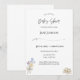Bienvenue dans le nouvel ajout en célébrant la maman d'être avec cet invitation baby shower neutre orné de bottes et d'un bouquet de fleurs noué au ruban.