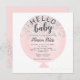 Aquarelle rose pastel moderne avec parties scintillant argentée scintille le baby shower confetti avec un joli ballon d'aquarelle peint à la main, ruban et typographie moderne.