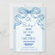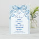 Une invitation à baby shower arc bleu poussiéreux retro dessinée à la main suivant la dernière tendance en baby shower stationnaire. Cette invitation au style fantaisiste et décalé comporte une arche rétro et une police manuscrite. Parfait pour les baby showers modernes et tendance pour les bébés garçons.