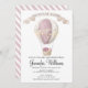 Invitation baby shower à montgolfière rose