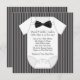 Pinstripe noire adorable, bow cravate bébé garçon invitation douche. Un mignon bébé blanc avec cravate arc sur un arrière - plan à rayures noir et blanc petite homme bébé garçon invitation est facile à customiser pour votre événement.