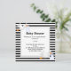 Un mélange de taches et de rayures Motif autour de l'invitation avec 2 cigognes mignonnes, baby shower, célébration assez personnalisable