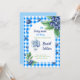 C'est le meilleur choix pour votre événement spécial ! Célébrez l'arrivée la plus douce avec cette charmante invitation baby shower "Berry Sweet". Doté d'un arrière - plan bleu en vichy classique, de bleuets d'aquarelle, de feuilles verts luxuriants et de ballons festifs, ce design allie à merveille charme rustique et élégance ludique. Le script moderne et la palette de couleurs douces en font un endroit idéal pour le baby shower d’un garçon ou toute célébration sur le thème des baies. Personnalisez avec vos détails d'événement pour créer une invitation chaleureuse et mémorable que vos invités aimeront. Idéal pour les rassemblements d'été, les fêtes en plein air ou les douches d'inspiration ferme.