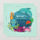 Conception de baby shower sur mesure, jolie, avec front de mer aquatique et fontaine d'eau ondulée sur vert d'eau ; motif de rayures de chevrons turquoise et blanche. Caractéristiques sous-marin joyeux créatures de caricatures de mer... dauphin turquoise, tortue de mer verte, crabe, récif corallien, poulpe bleu et jaune, et cheval de mer orange. Personnalisez ce design neutre pour bébé garçon ou fille nautique douche à thème océanique ou arroser. Merci!