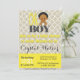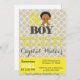 C'est une adorable invitation au baby shower des garçons afro-américains. Les couleurs modernes jaune et gris donnent un aspect unique à un baby shower traditionnel de garçon bleu.