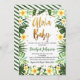 Vous recherchez une invitation pour un baby shower à thème tropical ? Ce dessin présente une large calligraphie de brosse en tête en faux or. Les bords de l'invitation présentent divers feuillages tropicaux, une fleur de frangipanier et une certaine parties scintillant. Le titre de la calligraphie en faux or ne peut pas être modifié, mais tout autre texte est modifiable. D'autres designs sont disponibles au magasin dans ce thème et style. Cette invitation de baby shower à fleurs tropicales neutre pour les femmes est prête à être personnalisée.