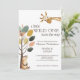 Fêtez l'arrivée d'un petit aventurier avec cette invitation baby shower enchanteresse "Un Sauvage est en route" ! Parfait pour une fête dans la jungle ou le safari, ce design propose une sélection fantastique d'adorables animaux, donnant le ton d'un rassemblement amusant et chaleureux pour accueillir le bébé sur le chemin.
