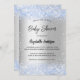 Pour une invitation élégante et baby shower, célébrer un bébé garçon. Un arrière - plan faux argenté. Décoré de confettis bleu clair, arroser. Personnalisez et ajoutez un nom et des détails. Écriture de style manuscrit moderne