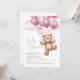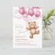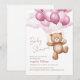 Une invitation baby shower décorée d'un adorable ours en peluche à cheval en ballons dans les nuages.