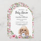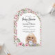 Carte d'invitation à baby shower plat avec roses d'aquarelle adorable et lapin farci mignon.