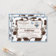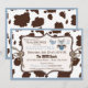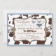 Impression de vaches avec sauteur de bandanna, chaussettes de bottes de cowboy, et couche sur la ligne de vêtements baby shower de conception de cartes d'invitation en bleu et marron.