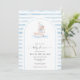 Cette invitation baby shower présente un motif rayé bleu intemporel avec une illustration d'ours en peluche matelot d'aquarelle douce. Le titre de script "baby shower" est une image qui ne peut pas être modifiée. Tous les autres textes sont entièrement modifiables. Pour une personnalisation plus avancée de cette conception, il suffit de cliquer sur le bouton "Customiser" ci-dessus.