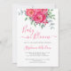 Cette jolie invitation à baby shower couple présente des roses d'aquarelle et des fleurs dans les tons roses avec l'eucalyptus et d'autres feuillages. Facilement personnalisable avec vos détails. Aquarelle originale © Michele Davies.
