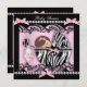 Baby shower mignon bébé fille rose noir dentelle blanche Zèbre Imprimer Pram Pearl dentelle perle dentelle béquille invitation, nouveau bébé, petite fille