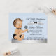 Petite invitation baby shower homme avec adorable petit bébé garçon habillé dans une jolie couche noire et cravate arc sur un joli bébé arrière - plan bleu et noir. Vous pouvez facilement customiser cette invitation de baby shower mignon petit homme pour votre événement en ajoutant simplement vos détails dans le style de police de votre choix. Vous pouvez également modifier la couleur de l'arrière - plan.