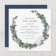 Baby shower tendance, carré invitation encadrée par aquarelle feuillage de couronnes de houx, de verdure et de fleurs d'hiver. Customisez avec vos informations pour votre jour de douche. Cliquez sur "cliquer pour customiser plus loin" pour modifier le style, la taille, la couleur ou la couleur arrière - plan de la police.