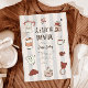 Carte d'invitation de baby shower Whimsical avec illustration dessinée à la main du café et des articles pour bébé. Le texte dit "un bébé est en train de brasser".