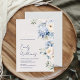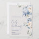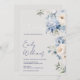 Aquarelle bleu poussiéreux et ivoire peonées baby shower invitation sur arrière - plan beige, adapté pour garçon et fille, neutre genre