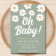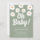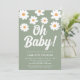 Prévoyez-vous le baby shower d'un garçon ou d'une fille ? Cette invitation au baby shower floral est décorée de marguerites dessinées à la main et d'une élégante typographie rétro blanche sur un arrière - plan vert. Facile à personnaliser. Dessin original © Michele Davies.