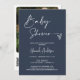 Invitation Baby shower bleu marine moderne simple QR Code pho