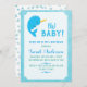 Vous cherchez l'une des invitations de douches pour bébé les plus tendance? Il fait chaud mais glacé. Le bébé narval est super mignon cette année. Nous avons un arrière - plan bleu glacé et un adorable petit narval en haut à gauche. La typographie au sommet est "Oh ! Bébé !" Des modèles sont créés pour vous. Crédit graphique étroit : PrettyGrafik.