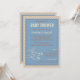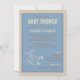 Personnalisez cette jolie invitation au baby shower bleu et crème. Dessin d'un oiseau-mère debout sur le bord de son nid à l'avant. Joli petit oiseau de l'autre côté aussi ! Disponible dans une variété de couleurs. N'oubliez pas - vous pouvez choisir le papier que vous préférez!
