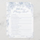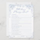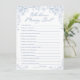 Célébrez une douce arrivée avec ce Baby shower Floral Bleu Personnalisé Qui connaît maman la meilleure carte de jeu! Parfait pour les idées de baby shower bleu et les idées de baby shower garçon, ce jeu amusant ajoute une touche spéciale à votre événement. Doté de fleurs élégantes, il est idéal pour un baby shower printanier et s'intègre parfaitement aux thèmes du baby shower printanier. Que vous planifiez des idées de baby shower de printemps ou des idées de baby shower floral, ce design complète n'importe quel bébé dans le thème de la floraison. Idéal pour bébé en fleurs douches idées garçon et baby shower thèmes pour les garçons!