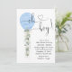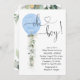 Oh mon Dieu ! Impressionnez vos invités avec cet adorable invitation de baby shower en ballons bleu verdoyant. Les succulents d'eucalyptus botaniques tombent en cascade avec des lueurs de feuilles d'or. Veuillez noter : Ce design présente des graphismes de haute qualité faits pour ressembler à de l'or brillant - ce n'est pas de l'or véritable feuille.