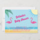 Cette Invitation de Baby shower tropical rose et bleu est accentuée par quelques mignons flamants roses, lui donnant une sensation de Barbiecore ludique et rétro. Si d'autres éléments de coordination sont nécessaires, il suffit de nous contacter à prettyfancyinvites@gmail.com avec votre demande.