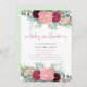 Cette invitation présente de superbes bouquets de fleurs à l'aquarelle peints à la main dans les tons rose, marsala et bordeaux, avec de superbes pivoines, des roses et d'autres fleurs de charme. Les coups de pinceau délicats et les couleurs vives créent une atmosphère fantaisiste et romantique, parfaite pour célébrer l'arrivée d'un petit précieux. Que vous soyez l'hôte d'un baby shower d'inspiration boho ou d'un bébé dans une fête fleurie, cette invitation captera le coeur de vos invités et donnera le ton pour un événement mémorable rempli d'amour et de joie.