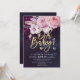 Cartes d'invitation Baby Shower Templates - Élégant Aquarelle Naturel Boho Floral Feather et Or Écriture Manuscrite sur Fond de Lumières Bokeh Violet Étincelant.
