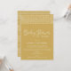 Que vous ne puissiez pas vous rassembler pour une fête en raison des directives de distanciation sociale coronavirus, ou que votre famille et vos amis à distance sont juste trop loin, ce Baby shower boho branché par l'invitation par courrier permettra à des proches de célébrer votre nouveau bébé de n'importe où. Le design se compose d'une bordure tribale d'inspiration en tissu de boue cool et d'une typographie minimaliste moderne. Montré sur un arrière - plan jaune moutarde neutre du genre ou utiliser les outils de conception pour customiser dans n'importe quelle couleur pour bébé garçon ou petite fille. Ajoutez les détails de votre baby shower virtuel ou votre personnaliser pour convenir à votre événement.