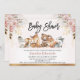Blush Gold Floral Woodland Baby shower Invitation baby shower de fille à thème boisé douce avec divers animaux boisés et deux boho ou chic joli, blush, gris et or coloré arrangements floraux ainsi que parties scintillant en or faux rose. L'invitation au baby shower de bois de cette fille est une douce façon de préparer le terrain pour le baby shower à thème des animaux de bois d'une jeune fille.