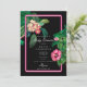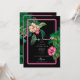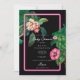 Une botanique tropicale néon rose moderne et rétro sur un arrière - plan noir. Un beau design idéal pour l'été. Design plante tropical néon rose parfait avec palmiers, fleurs d'Hibiscus roses et fleurs de Plumerias Frangipanis. Les couleurs noir, rose et vert dominent ce néon rose tropical.
