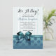 Cette invitation classique et élégante de baby shower de fille bleue comporte un grand arc en satin bleu avec des rayures bleues et des pois qui dit "C'est un garçon !". Une belle invitation à la douche de bébé pour cette maman très spéciale.