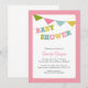 Des panneaux colorés et une bannière audacieuse mettent en avant cette invitation baby shower.