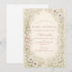 Un design floral romantique et doux présentant des glycines en cascade, des roses de jardin rose tendre, des ranunculus crémeux et de délicates fleurs blanches disposées dans une composition verticale aérée. Les fleurs encadrent doucement un fond de parchemin chaud, créant une esthétique gracieuse et inspirée du vintage avec une profondeur et un mouvement subtils. Les tons rose tendre et lavande atténués se sentent raffinés et féminins tout en maintenant un équilibre léger et élégant. Parfait pour une célébration intemporelle printanière ou inspirée du jardin.