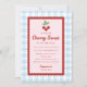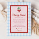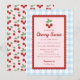 Célébrez votre future baby shower avec cette charmante invitation. Avec des cerises rouges vives associées à un motif carreaux bleu classique, ce design est simple, frais et parfait pour accueillir un petit. Idéal pour les baby shower de printemps ou d'été, il offre un look propre et joyeux facile à personnaliser pour les détails de votre événement.