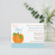invitations à la douche bébé garçon douce et moderne à thème automne. Motif de citrouille et de chevrons dans les tons bleu turquoise, marron et orange.