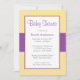 Baby shower moderne violet et jaune chevron invitation. Preppy et mignon ! Parfait pour un baby shower de fille douce. Customisez facilement pour votre baby shower.