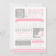 Une jolie invitation baby shower pour une petite fille. Petit éléphant et oiseau mignon, rayures de chevrons, thème d'affiche de cirque et typographie mignonne !