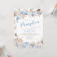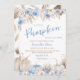 Célébrez votre petit citrouille sur le chemin avec cette douce et élégante Boy Boho Citrouille Baby shower Invitation. Cette décoration se décline dans des tons bleus doux associés à des citrouilles blancs et bleus aquarellés, une végétation subtile et d'élégants tons d'herbe à la pampa, créant un parfait mélange de charme rustique et d'élégance boho. Donnez le ton d'une belle et sincère fête avec cette invitation de citrouille de boho bleu, parfait pour accueillir votre bébé cet automne! BBS499