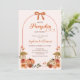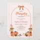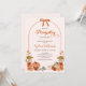 Célébrez votre petit citrouille sur le chemin avec cette charmante invitation baby shower pour une fille. Doté de citrouilles fantaisistes à l'arc sucré et entouré de fleurs rose, orange et orange brûlée, ce design automne mêle le style boho et coquette pour une célébration saisonnière parfaite. Personnalisez avec les détails de votre fête pour créer un gardien que les invités adoreront.