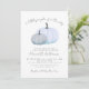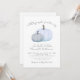 Un petit Citrouille est sur le chemin - Invitation Baby shower d'automne Célébrez l'arrivée à venir avec cette invitation douce et simple baby shower, parfait pour un garçon et idéal pour un rassemblement d'automne ou d'automne. En haut, l'expression "Un petit Citrouille est sur le chemin" est écrite en polices grises à l'aide d'un mélange de scripts manuscrits et de styles serif classiques pour un look doux et élégant. Le design comporte deux citrouilles dans les tons doux de bleu près du fond, gardant les choses minimes et doux sans éclaboussures ou superpositions supplémentaires. Un arrière - plan blanc propre garde l'aspect général simple et moderne, tandis que les détails de l'événement sont clairement disposés sous l'oeuvre de coordination des polices grises. Cette invitation est entièrement personnalisable : vous pouvez modifier le texte, les polices et la mise en page pour qu'il s'adapte parfaitement à votre événement. Un beau choix pour une douche pour bébé pendant la saison d'automne, mais assez doux et doux pour fonctionner à tout moment de l'année. Disponible sous forme d'invitation imprimée ou de fichier numérique téléchargeable pour envoyer un courriel ou imprimer localement.