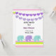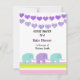 Un design mignon avec des cordes violettes de coeur et des éléphants de bébé accentués par une bordure de bandes molles. Customisez avec toutes les informations de votre baby shower selon vos besoins.