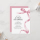 Découvrez nos invitations de baby shower modernes avec un joli ruban et un noeud en aquarelle rose fluide. Ces invitations incarnent l'élégance dans un modèle de texte qui communique sans effort tous les détails de la fête de baby shower. Vos invités seront captivés par leur charme, tandis que vous aimerez leur efficacité et leur style.